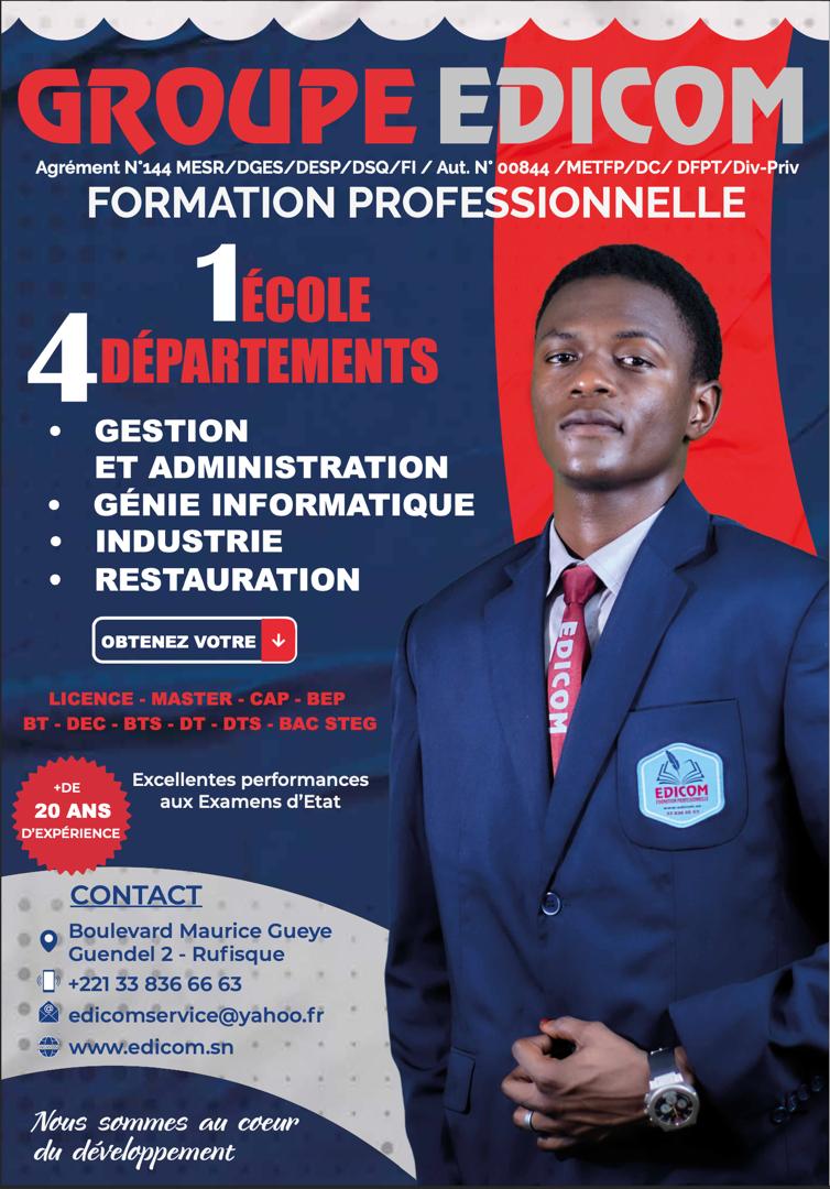 LE GROUPE EDICOM PIONNIER DE L’ENSEIGNEMENT PROFESSIONNEL DANS LE DEPARTEMENT DE RUFISQUE VOUS OFFRE UN CADRE D’ÉPANOUISSEMENT SANS PAREIL.