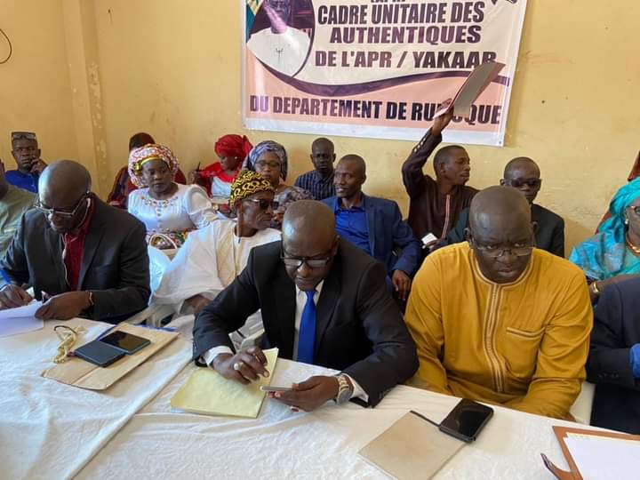 En 2022 sur un fichier de 249.867 électeurs et 162.490 votants, BBY a obtenu 41.000 voix. Ces résultats laissent paraître une grande régression de notre coalition depuis 2014. Nous avions alerté en tant qu’Authentiques en créant le CRAP (Comité de Relance et d’Animation du Parti). Mais, nos orientations n’ont pas été suivies. Ainsi, déterminés plus que jamais en tant qu’Authentiques, notre Cadre Unitaire s’evertuera à remettre les pendules à l’heure en allant à l’assaut des responsables et militants pour une victoire écrasante de notre Coalition au soir du 31 juillet 2022 dans tout le Département. Nous demandons à rencontrer le Secrétaire général de notre Parti, l’APR Yakaar, pour une explication plus exhaustive des missions que nous nous sommes assignés afin d’atteindre notre objectif de remporter triomphalement les législatives à venir ».
