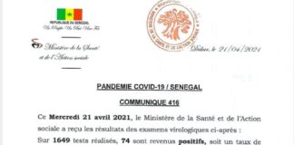 Covid-19 : 27 cas positifs et 02 décès supplémentaires selon le...