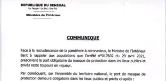 Coronavirus Senegal : Le port du masque obligatoire dans…