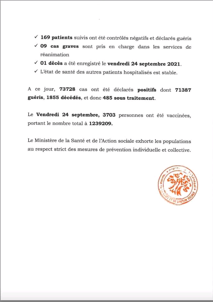 La UneSanté Covid-19 : Les chiffres du jour avec 9 nouvelles contaminations Par Lerepublicainsn - septembre 25, 2021 0 887 Share Facebook Twitter WhatsApp Linkedin "/>