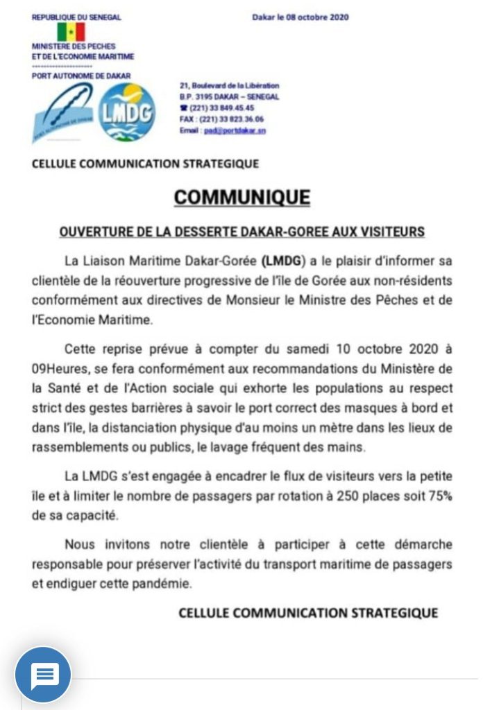 Société Dakar-Gorée: La liaison maritime reprend ce samedi Par Lerepublicainsn - octobre 9, 2020 0 645 Share Facebook Twitter WhatsApp Linkedin "/>