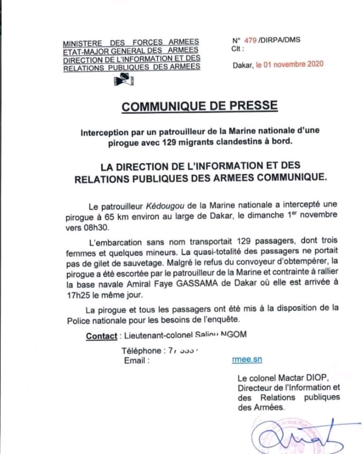 La UneSociété Émigration clandestine : Une pirogue avec 129 personnes à bord interceptée (Document) Par Lerepublicainsn - novembre 1, 2020 0 826 Share Facebook Twitter WhatsApp Linkedin "/>