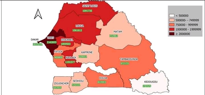 55% de la population résident dans les 4 régions ( Dakar, Thies, Diourbel, Touba).