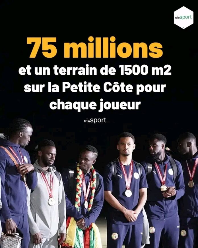 Pour saluer cet exploit historique, le chef de l’État a annoncé une prime exceptionnelle de 75 millions de francs CFA pour chaque joueur, accompagnée de l’attribution d’un terrain de 1 500 mètres carrés sur la Petite-Côte. Un geste fort, à la hauteur de la performance réalisée par la sélection nationale.