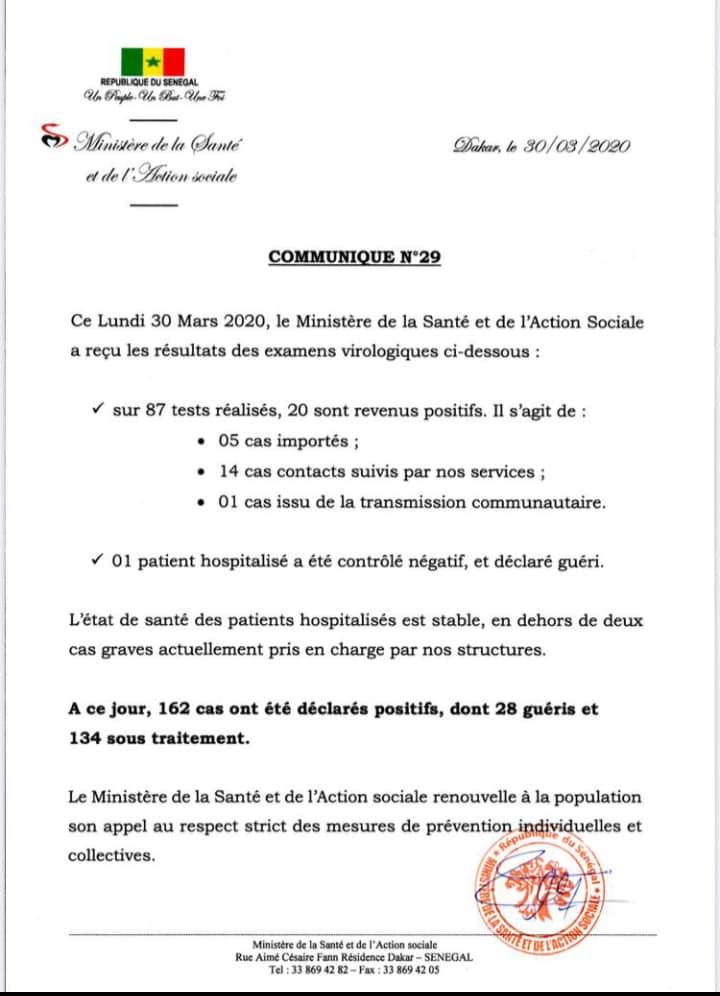 La Une Le Sénégal enregistre 20 nouveaux cas positifs Par Moussa Gueye - mars 30, 2020 0 546 Share Facebook Twitter WhatsApp Linkedin "/>