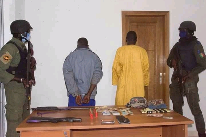 Le premier a été arrêté le lundi 11 janvier 2021 à 14h Ndiebel, Gandiaye et le chef de la bande le mardi 12 janvier à 10h à Katakel à 12km au Sud de Kaffrine. Un fusil à pompe de fabrication russe avec neuf cartouches de 12 mm a été saisi mais aussi un nombre important de téléphones portables ; deux cent mille (200.000) francs CFA ; quatre-ving et un (81) bœufs dont une bonne partie de race, trente-quatre (34) moutons de race, vingt-huit (28) chèvres…