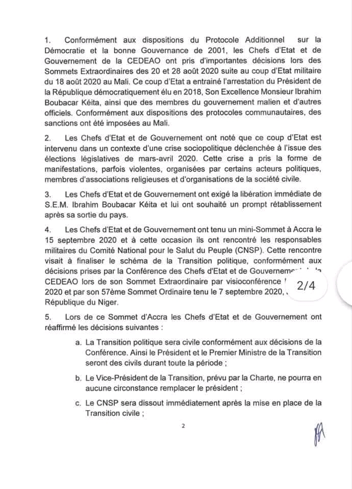 International Mali: Les sanctions de la Cedeao levées (Documents) Par Lerepublicainsn - octobre 6, 2020 0 716 Share Facebook Twitter WhatsApp Linkedin "/>